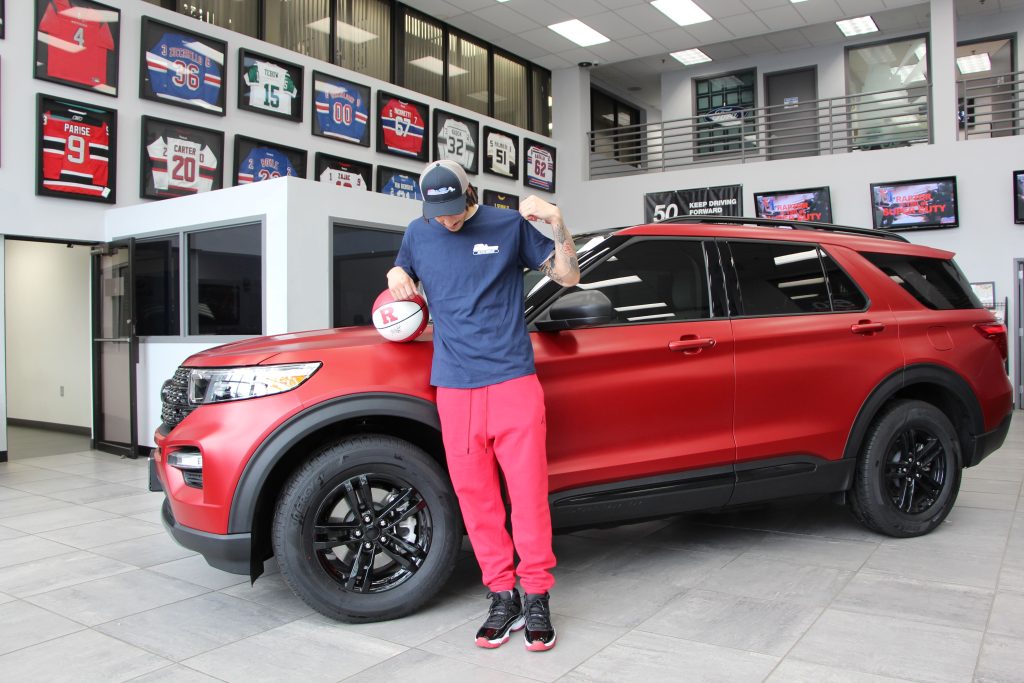 Our custom wraps have caught the attention of celebrity and athlete partnerships. Pete Alonso, the New York Mets first baseman, recently was driving a custom matte black wrapped Mustang Mach-E from us. Xavier McKinney, the Safety from the New York Giants took an interest in our custom wrapped Mach-E’s as well. Shooting Guard, Caleb McConnel, from Rutgers basketball, recently purchased a Ford Explorer here that we wrapped Rutgers Satin Red for him.