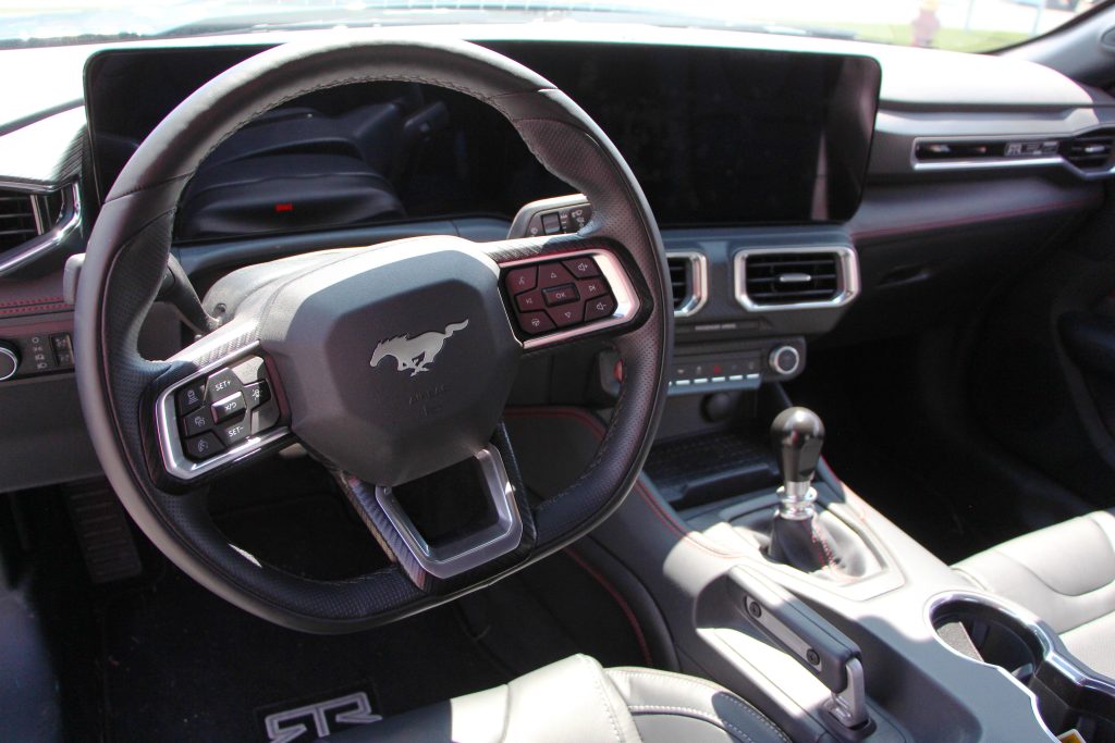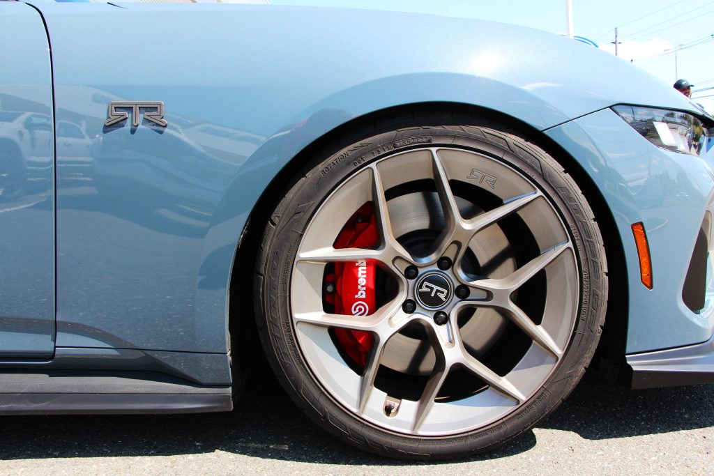 RTR brought the first 2024 Mustang RTR to our dealership to give us a sneak peak! They brought a Spec 2 to show us which had tons of great features like the new LED headlamps. This one also featured high flow bumper heat extractor and lower grille as well as corner pockets for higher airflow. The Mustang RTR Spec 2 has tactical performance suspension with a one inch lower tactical spring and fully adjustable struts, sway bars, and shocks. Additionally, it comes with RTR badging, duckbill spoiler, and five different wheel options. Inside you will find a performance shifter in automatic or manual models. You can get leather but we got to see the Recaro seats and they all come with an RTR dash plaque.