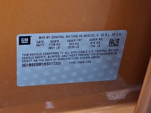 REMOTE VEHICLE STARTER SYSTEM, SEATS HEATED DRIVER AND FRONT PASSENGER, ORANGE BURST METALLIC, LT PREFERRED EQUIPMENT GROUP includes Standard Equipment, KEYLESS OPEN, REAR CROSS-TRAFFIC ALERT, KEYLESS START, LICENSE PLATE BRACKET FRONT, TIRES 205/55R16 ALL-SEASON BLACKWALL (STD), REAR PARK ASSIST, AUDIO SYSTEM CHEVROLET MYLINK RADIO WITH 7 DIAGONAL COLOR TOUCH-SCREEN AM/FM stereo with seek-and-scan and digital clock includes Bluetooth® streaming audio for music and select phones; featuring Android Auto and Apple CarPlay capability for compatible phone (STD), DRIVER CONFIDENCE PACKAGE includes (UD7) Rear Park Assist (UKC) Side Blind Zone Alert with Lane Change Alert and (UFG) Rear Cross-Traffic Alert, ENGINE 1.4L TURBO DOHC 4-CYLINDER DI with Continuous Variable Valve Timing (CVVT) (153 hp [114.08 kW] @ 5600 rpm 177 lb-ft of torque [239 N-m] @ 2000-4000 rpm) (STD), TRANSMISSION 6-SPEED AUTOMATIC (STD), JET BLACK CLOTH SEAT TRIM, SEATS FRONT BUCKET WITH RECLINING SEATBACKS AND ADJUSTABLE HEAD RESTRAINTS (STD), SEAT ADJUSTER DRIVER 8-WAY POWER, SIDE BLIND ZONE ALERT WITH LANE CHANGE ALERT, CONVENIENCE PACKAGE includes (ATH) Keyless Open (BTM) Keyless Start (KA1) heated driver and front passenger seats and (AH5) driver 8-way power seat adjuster and (BTV) remote vehicle starter system [with automatic transmission only]; deletes (KTF) primary foldable key, Turbocharged, Front Wheel Drive, Power Steering, ABS, 4-Wheel Disc Brakes, Aluminum Wheels, Tires - Front Performance, Tires - Rear Performance, Temporary Spare Tire, Rear Spoiler, Automatic Headlights, Heated Mirrors, Power Mirror(s), Intermittent Wipers, Variable Speed Intermittent Wipers, Intermittent Wipers, Daytime Running Lights, AM/FM Stereo, MP3 Capability, Bluetooth® Connection, Auxiliary Audio Input, Smart Device Integration, Satellite Radio, Requires Subscription, Bluetooth® Connection, Telematics, WiFi Hotspot, Requires Subscription, MP3 Capability, Auxiliary Audio Input, Bucket Seats, Cloth Seats, Pass-Through Rear Seat, Rear Bench Seat, Floor Mats, Adjustable Steering Wheel, Steering Wheel Audio Controls, Tire Pressure Monitor, Power Windows, Power Door Locks, Keyless Entry, Power Door Locks, Cruise Control, Security System, Security System, Immobilizer, A/C, Rear Defrost, Driver Vanity Mirror, Passenger Vanity Mirror, Front Reading Lamps, Cargo Shade, Traction Control, Stability Control, Driver Air Bag, Passenger Air Bag, Front Side Air Bag, Rear Side Air Bag, Front Head Air Bag, Rear Head Air Bag, Passenger Air Bag Sensor, Knee Air Bag, Telematic