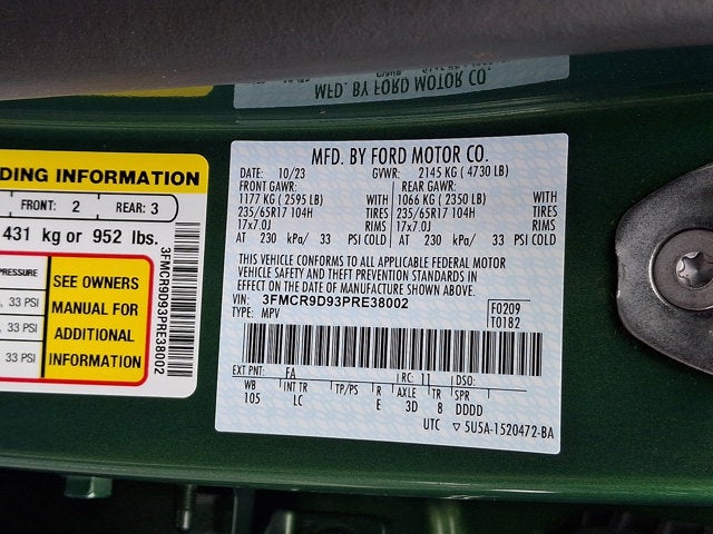 This vehicle was reacquired by the manufacturer. The reason that was provided by manufacturer is: * Check Engine Light on.This problem has been rectified by our service department. The vehicle was driven by our shop foreman, with no recurring issues after repairs. The price of the vehicle reflects that it is part of the RAV Program.2.0L EcoBoost Engine: auto start-stop technology (STD), Turbocharged, Four Wheel Drive, Locking/Limited Slip Differential, Power Steering, ABS, 4-Wheel Disc Brakes, Brake Assist, Locking/Limited Slip Differential, Aluminum Wheels, Tires - Front All-Terrain, Tires - Rear All-Terrain, Conventional Spare Tire, Tow Hooks, Heated Mirrors, Power Mirror(s), Rear Defrost, Intermittent Wipers, Variable Speed Intermittent Wipers, Privacy Glass, Power Door Locks, Daytime Running Lights, Automatic Headlights, LED Headlights, Automatic Highbeams, Fog Lamps, AM/FM Stereo, Satellite Radio, Requires Subscription, MP3 Capability, Steering Wheel Audio Controls, Satellite Radio, Requires Subscription, MP3 Capability, Telematics, Auxiliary Audio Input, Smart Device Integration, Requires Subscription, Bluetooth® Connection, Pass-Through Rear Seat, Rear Bench Seat, Adjustable Steering Wheel, Trip Computer, Power Windows, WiFi Hotspot, Leather Steering Wheel, Keyless Entry, Power Door Locks, Keyless Entry, Power Door Locks, Keyless Start, Cruise Control, Climate Control, A/C, Power Driver Seat, Cloth Seats, Bucket Seats, Heated Front Seat(s), Driver Adjustable Lumbar, Driver Vanity Mirror, Passenger Vanity Mirror, Driver Illuminated Vanity Mirror, Passenger Illuminated Visor Mirror, Floor Mats, Keyless Start, Smart Device Integration, Requires Subscription, Smart Device Integration, Power Door Locks, Power Windows, Trip Computer, Security System, Immobilizer, Traction Control, Stability Control, Traction Control, Front Side Air Bag, Telematics, Requires Subscription, Blind Spot Monitor, Cross-Traffic Alert, Lane Departure Warning, Lane Keeping Assist, Lane Departure Warning, Front Collision Mitigation, Driver Monitoring, Tire Pressure Monitor, Driver Air Bag, Passenger Air Bag, Front Head Air Bag, Rear Head Air Bag, Passenger Air Bag Sensor, Knee Air Bag, Driver Restriction Features, Child Safety Locks, Back-Up Camera
