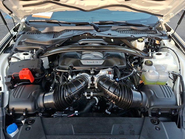 This vehicle is Gold Certified under the Ford Blue Advantage Certification Program. Only Ford models up to 6 years old with less than 80,000 miles can become Gold Certified. These vehicles pass a thorough 172-point inspection and come with a 12-Month/12,000-Mile (whichever comes first) Comprehensive Limited Warranty, 7-Year/100,000-Mile (whichever comes first) Powertrain Limited Warranty, 24/7 Roadside Assistance, and 22,000 FordPass Rewards Points to use toward your first two maintenance visits. Your Gold Certified vehicle also comes with a CARFAX Vehicle History Report, a SiriusXM complimentary 3-month trial, a full tank of fuel, fresh oil and filter, and new wiper blades. ENGINE: 5.0L TI-VCT V8 -inc: stop/start system and Port Fueled Direct Injection (PFDI) (STD), Rear Wheel Drive, Power Steering, ABS, 4-Wheel Disc Brakes, Brake Assist, Aluminum Wheels, Tires - Front Performance, Tires - Rear Performance, Wheel Locks, Heated Mirrors, Power Mirror(s), Integrated Turn Signal Mirrors, Rear Defrost, Intermittent Wipers, Variable Speed Intermittent Wipers, Rain Sensing Wipers, Rear Spoiler, Convertible Soft Top, Daytime Running Lights, Automatic Headlights, LED Headlights, Automatic Highbeams, AM/FM Stereo, Satellite Radio, HD Radio, Requires Subscription, MP3 Capability, Steering Wheel Audio Controls, Auxiliary Audio Input, Satellite Radio, HD Radio, Requires Subscription, Satellite Radio, Requires Subscription, Bluetooth® Connection, Heated Front Seat(s), Cooled Front Seat(s), Rear Bench Seat, Adjustable Steering Wheel, Trip Computer, Power Windows, WiFi Hotspot, Leather Steering Wheel, Heated Steering Wheel, Keyless Entry, Power Door Locks, Keyless Start, Keyless Entry, Power Door Locks, Universal Garage Door Opener, Cruise Control, Climate Control, Multi-Zone A/C, A/C, Power Driver Seat, Power Passenger Seat, Leather Seats, Bucket Seats, Driver Adjustable Lumbar, Driver Vanity Mirror, Passenger Vanity Mirror, Driver Illuminated Vanity Mirror, Passenger Illuminated Visor Mirror, Auto-Dimming Rearview Mirror, Floor Mats, Keyless Start, MP3 Capability, Telematics, Auxiliary Audio Input, Smart Device Integration, Requires Subscription, Power Windows, Power Door Locks, Trip Computer, Immobilizer, Security System, Traction Control, Stability Control, Traction Control, Front Side Air Bag, Rear Parking Aid, Blind Spot Monitor, Cross-Traffic Alert, Rear Collision Mitigation, Lane Departure Warning, Lane Keeping Assist, Lane Departure Warning, Front Collision Mitigation, Driver Monitoring, Tire Pressure Monitor, D