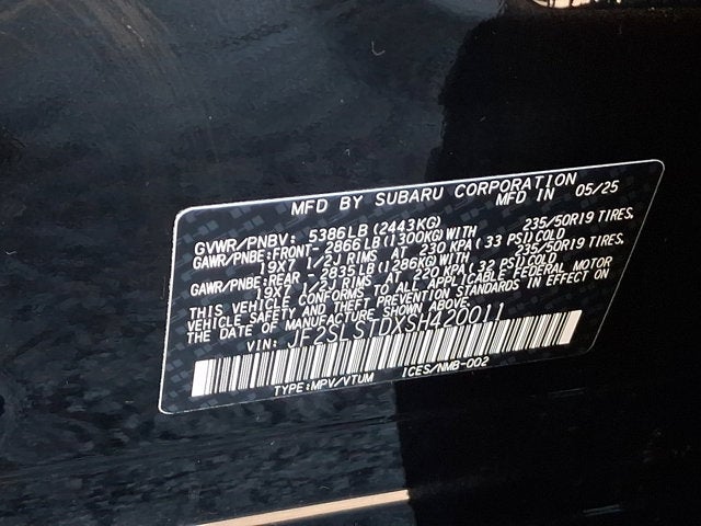 - Wheels: 19" x 7.5 J Dark Gray Aluminum-Alloy -inc: machine finish and black wheel center cap w/Subaru 6 star logo